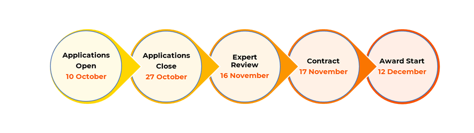 Seed funding of up to £20,000 over one year will be awarded to successful collaboration bids from the symposia, led by a UK researcher and designed to strengthen collaborations developed at the symposia. Please see the Seed funding guidance note to learn more about how to apply for Seed funding. Check out the timeline of the application process: